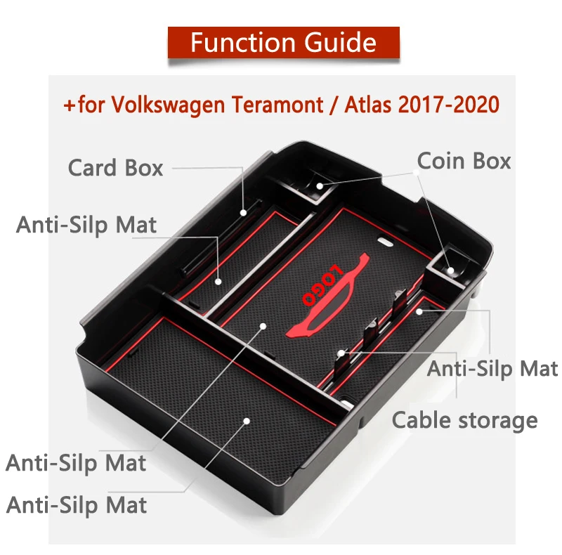 Armrest Box Storage for VW Teramont 2017 2018 2019 2020 Atlas Stowing Tidying Organizer Volkswagen